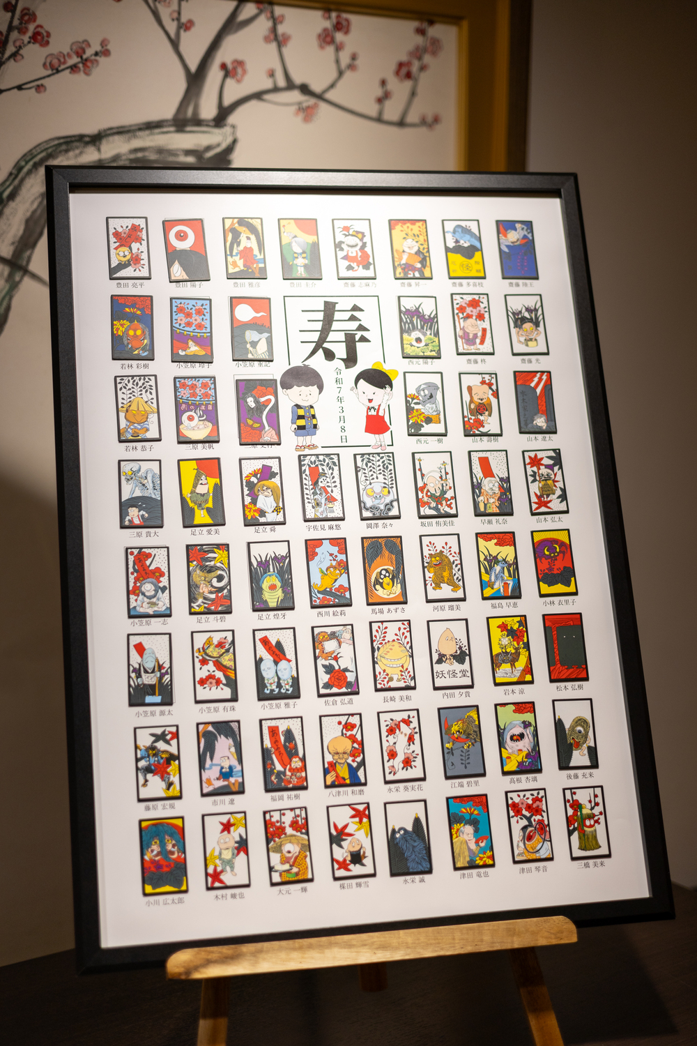 ウェルカムボードはお二人のお好きな妖怪がデザインされた花札を取って、